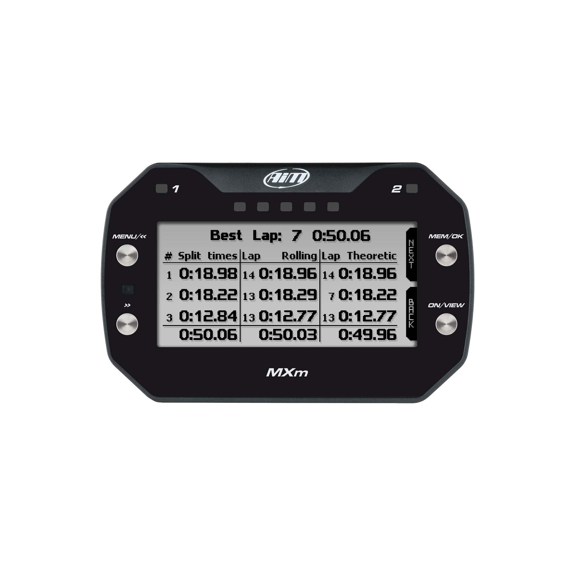 The compact AiM MXm dash logger contains all of exciting features of AIM's dash systems, but in an ultra compact 5" display. The LCD display features fully customizable pages, allowing the user to choose from a vast library of page styles, and define exactly which data to be shown.