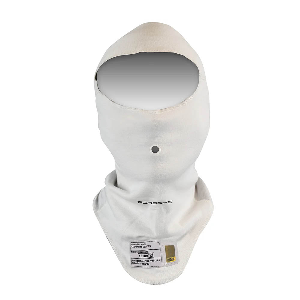 Maximize comfort and fire resistance with the Stand-21 Porsche Motorsports Balaclava. Featuring a dual-layer front, breathable brushed inner, pre-formed nose area, and extra flat seams, this balaclava offers unparalleled comfort. Thanks to its minimal seam construction, enjoy optimal comfort the entire race. Complete with exclusive Porsche Motorsport branding.